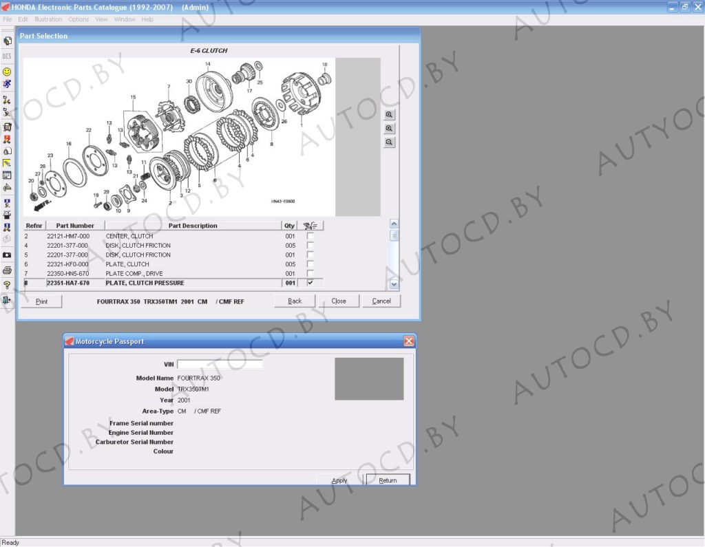 В каталоге для поиска запчастей к мототехнике Honda имеется выбор по модели, поиск и расшифровка VIN, Job-листы, норма часы и стоимость запчастей, а также удобный интерфейс, фотографии всех мотоциклов и качественные иллюстрации автозапчастей.